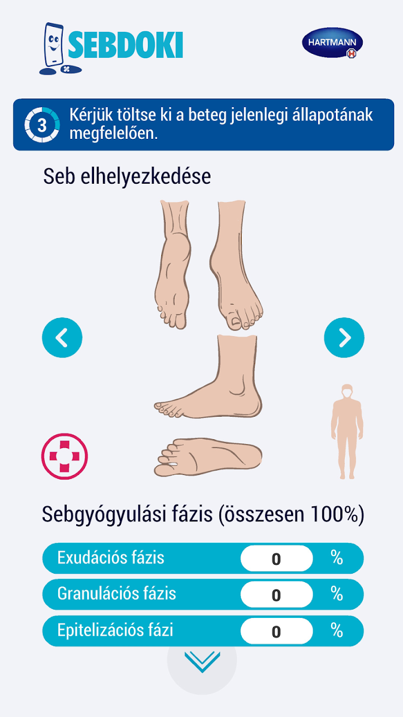 Az alkalmazásban a beteg vagy a sebkezelést végző ápoló (sebet kezelő ápoló) részletes információkat nyújthat a seb állapotáról, fotókkal kiegészítve. Az összegyűjtött információkat e-mailben közvetlenül az orvoshoz (a szakemberhez és opcionálisan a háziorvoshoz is) küldi az alkalmazás.
